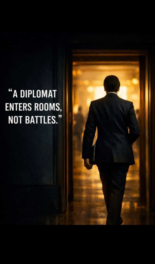 A diplomat enters rooms, not battles.