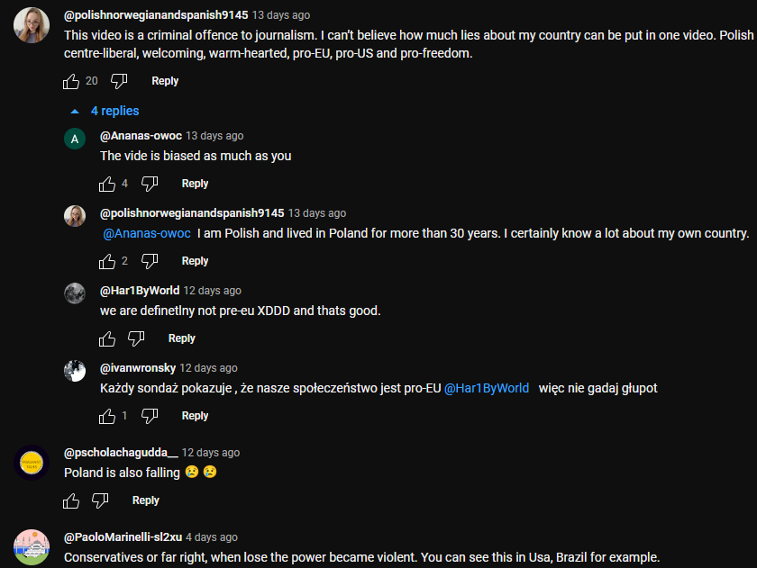 “Right wing” – PiS it is actually and paradoxaly most social party ever took power in Poland. “Nationalists” – in Poland it’s patriotism. And here it is not a negative term, like in our western friends. “Populists” – actually it is Tusk party who is a populist. He was completely wrong about Russia, and Germany. Otherwise PiS who predict everything. “Discrimination” – no there was ANY discrimination – it is simply fals, please give me just one legal example. “Woman died about new abortion law” – there was no “new abortion law”, and no one died because of this. This document is a simple german propaganda. I can’t believe someone made so manipulated material.