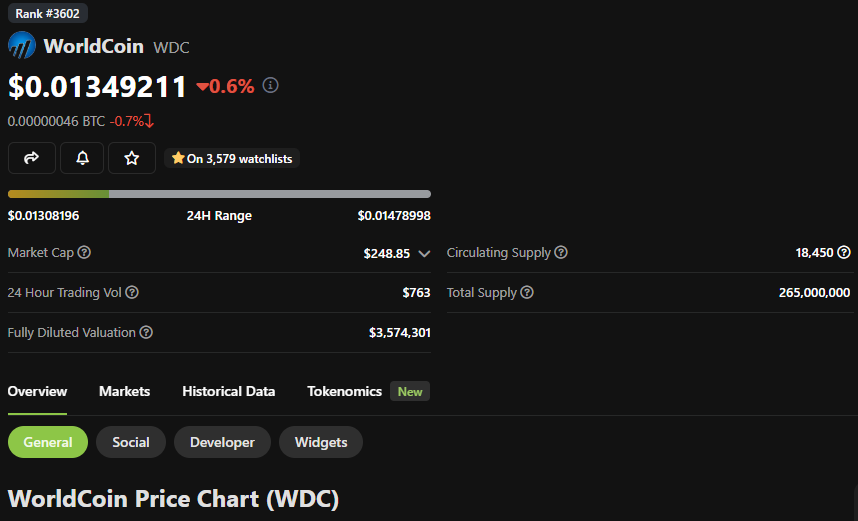 WorldCoin – Tikker: WDC (Price dated 4th August 2023)